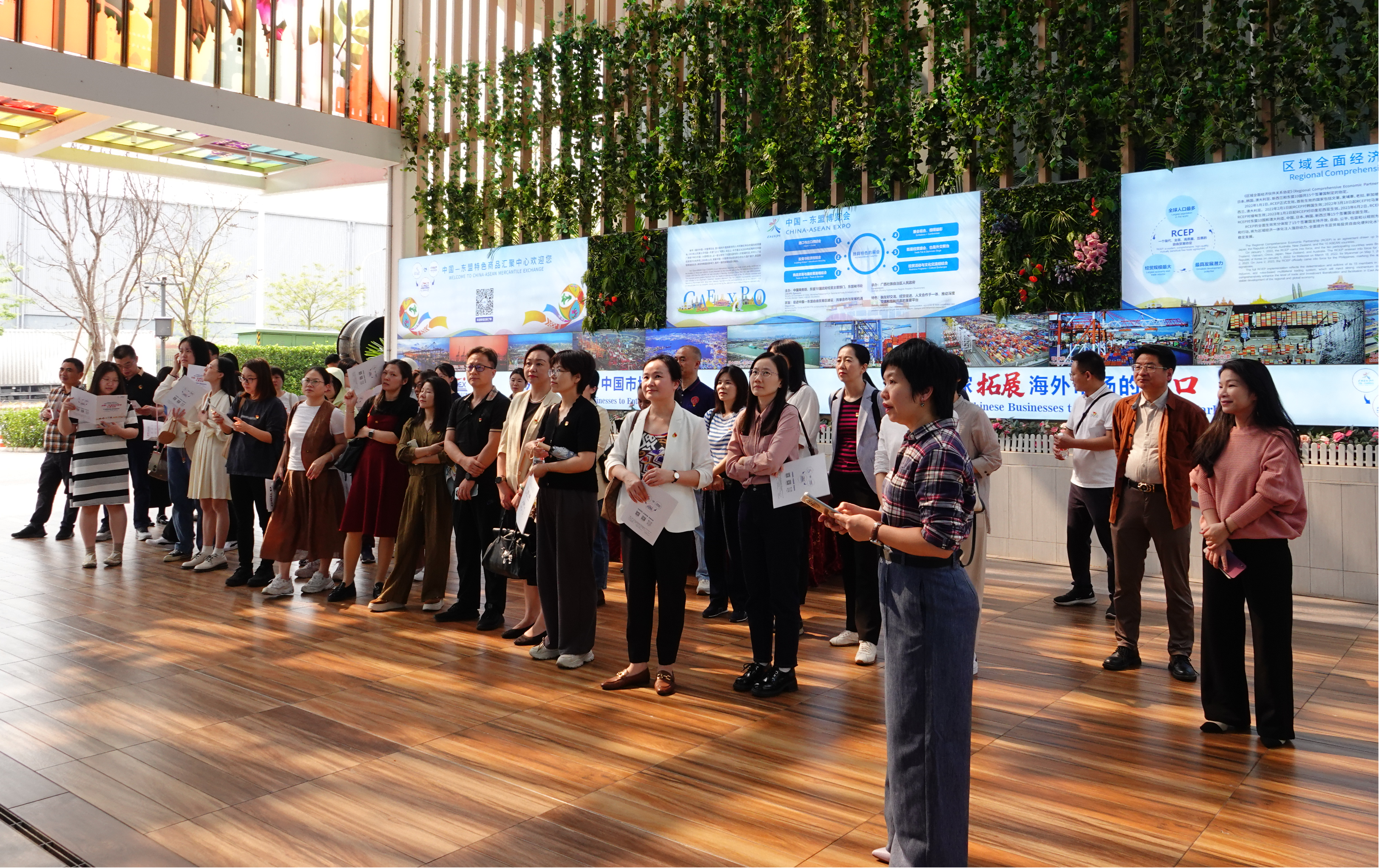 在中国—东盟特色商品汇聚中心,全体党员参观了解中国与东盟在经贸领域的合作成果以及特色商品的文化内涵与市场前景,增强党员干部对中国—东盟经贸合作重要性的认识,提升服务区域发展的责任感。