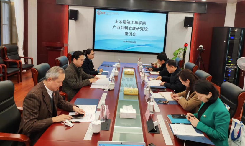 1月12日,土木建筑工程学院院长安永辉、党委副书记银宁、副院长宁裕忠一行到2138CC太阳集团开展智库建设交流座谈。广西创新发展研究院执行院长梁运文主持座谈会。