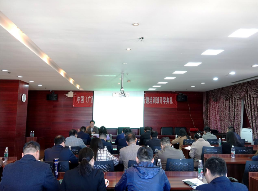 对外经济贸易大学国际商务战略研究院副院长李计广主持开班典礼,对外经济贸易大学国家对外开放研究院党委书记、国际经济研究院副院长庄芮致欢迎辞,广西壮族自治区商务厅二级巡视员窦锡林作开班动员讲话。