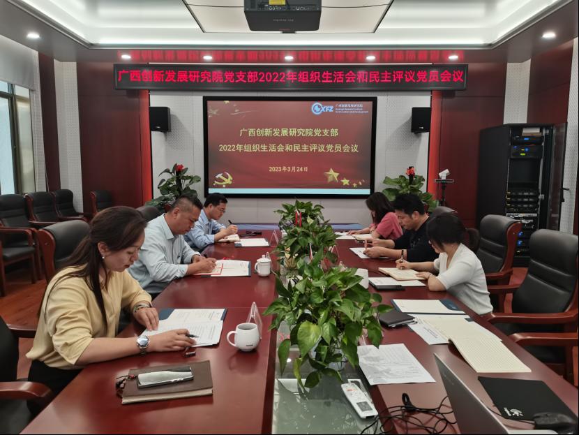 2023年3月24日下午,广西创新发展研究院党支部在院312会议室召开2022年度组织生活会和开展民主评议党员会议。党支部书记曹蕾主持会议,校机关纪委书记郭昌明列席会议并指导,党支部全体党员参加会议。