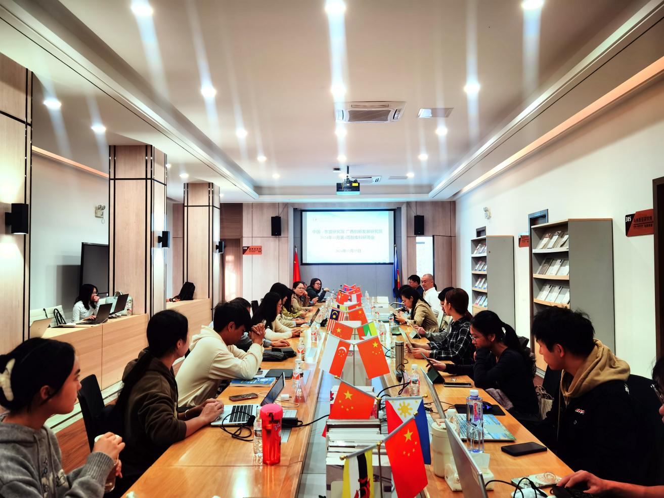 研究人员根据时事跟踪任务分工,逐一汇报分享了2024年11月15日至11月21日东盟国家政治、经贸、投资、社会等动态情况,并选取重要时事要闻、热点资讯信息进行详细解读与介绍。