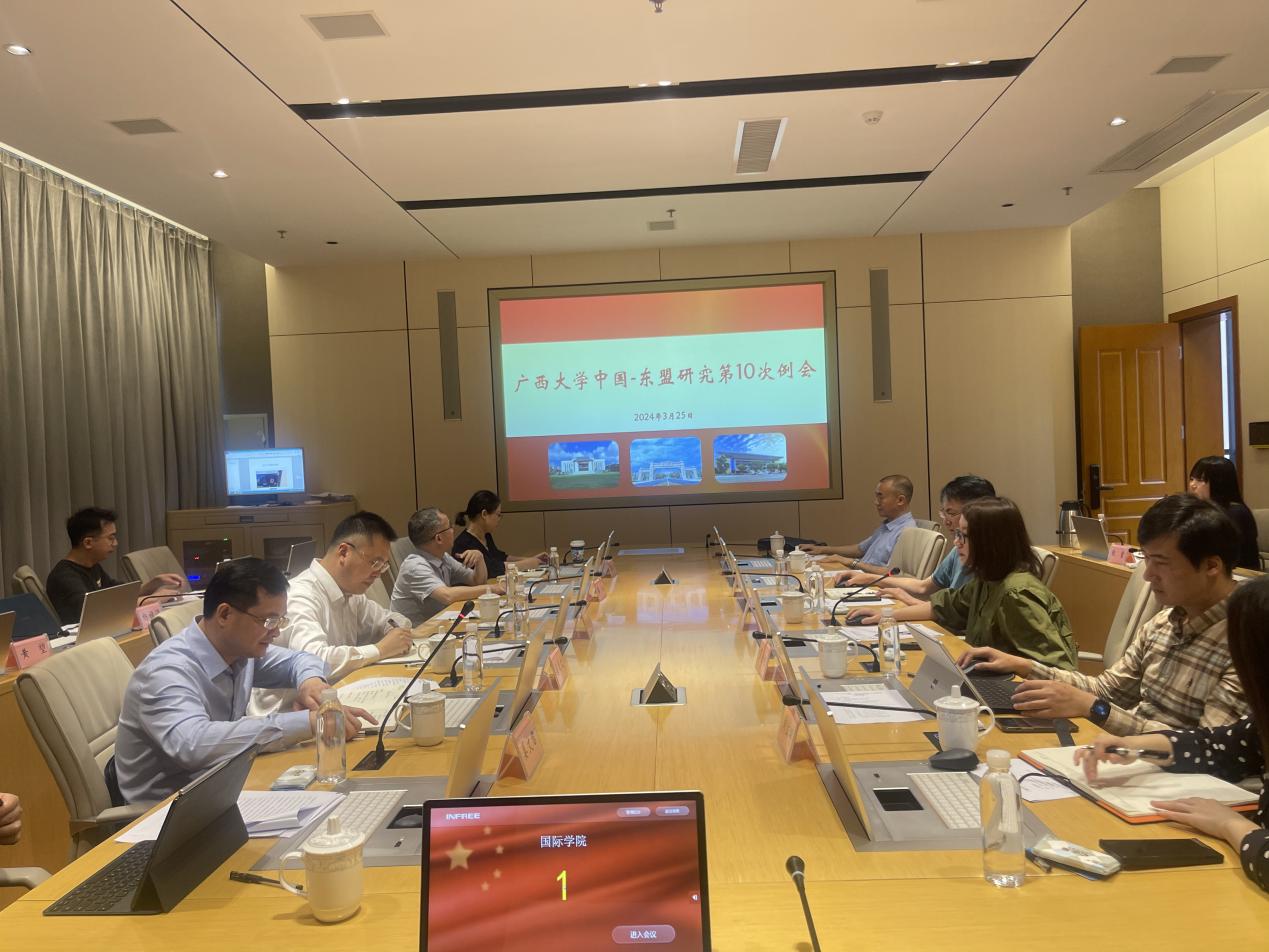 3月25日,2138CC太阳集团中国—东盟研究第10次例会在国际学院副楼303会议室召开。校党委常委、副校长夏国恩出席并指导例会召开。中国—东盟研究院、广西创新发展研究院、中国—东盟信息港大数据研究院全体研究人员参加例会。