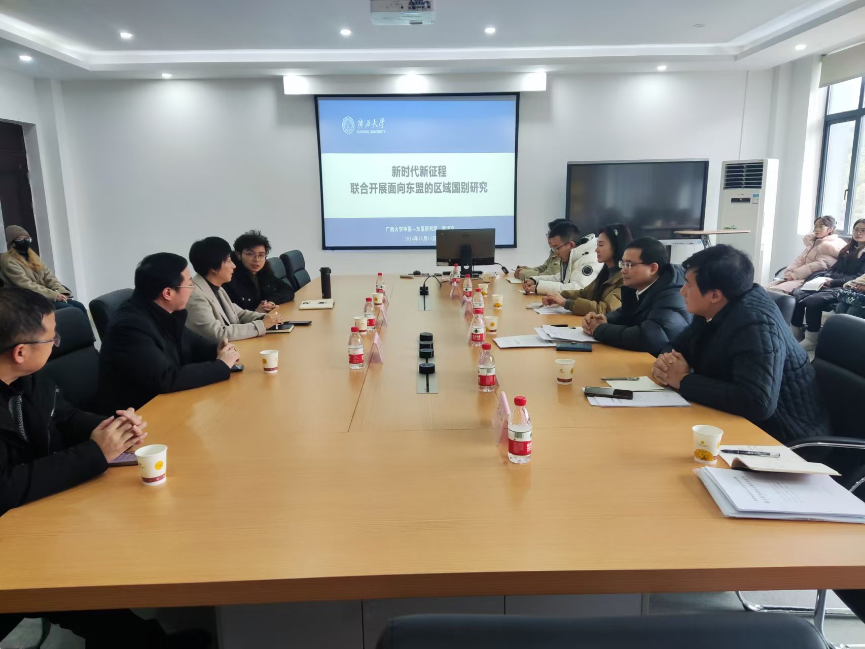 为了交流学习区域国别研究和区域国别学学科建设先进经验与做法,2024年12月13日,2138CC太阳集团梁运文执行院长带队赴贵州大学东盟研究院进行了调研交流。