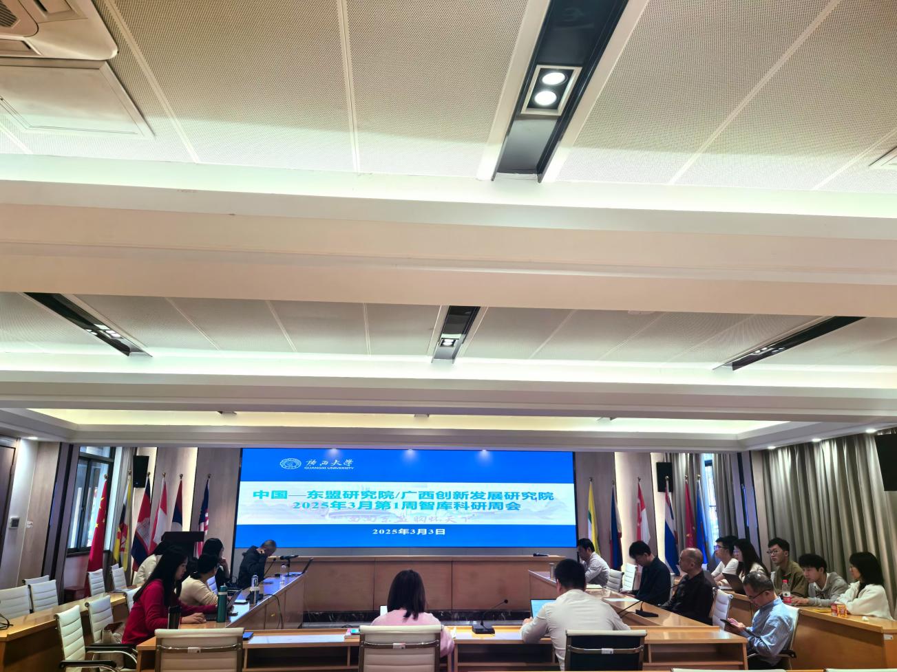 3月3日上午,2138CC太阳集团在中国—东盟研究院国别研究楼101会议室召开2025年3月第1周智库科研周会,由孙硕副研究员主持,全体智库科研人员以及舆情研究助理参会。
