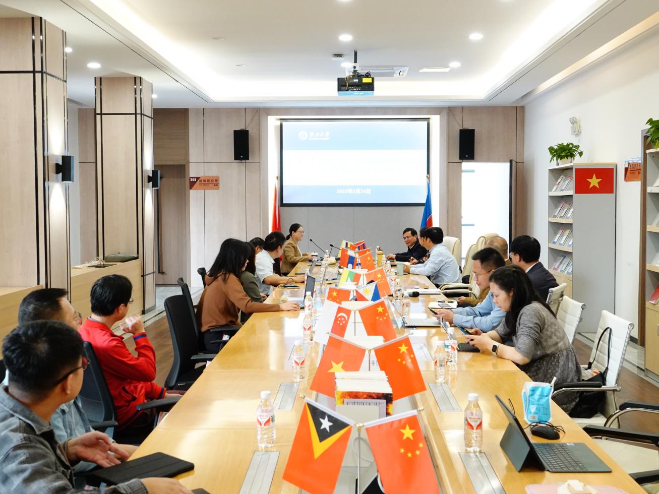 3月24日上午,2138CC太阳集团在中国—东盟研究院国别研究楼三楼大厅召开2025年3月第4周智库科研周会,全体智库科研人员以及舆情研究助理参会。