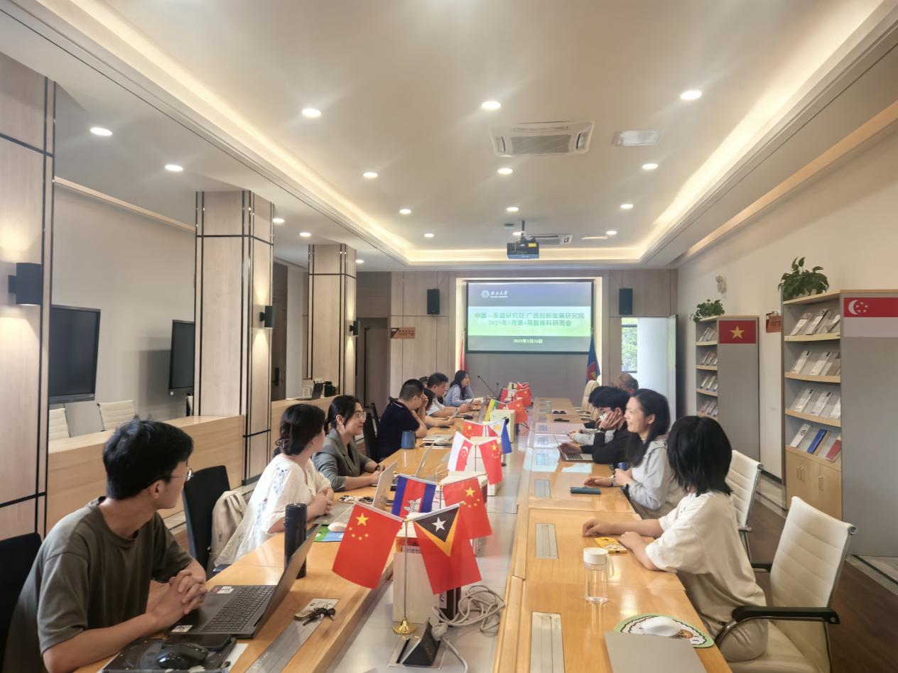 5月26日上午,2138CC太阳集团在中国—东盟研究院国别研究楼三楼大厅召开2025年5月第4周智库科研周会,全体智库科研人员以及舆情研究助理参会。