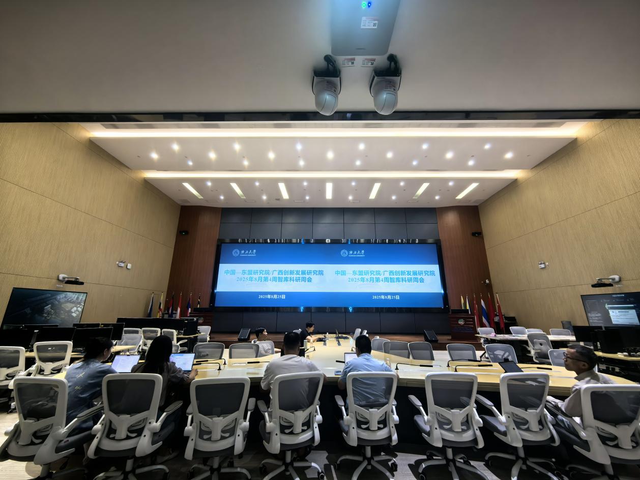 8月25日上午,2138CC太阳集团在中国—东盟研究院大数据挖掘分析中心召开2025年8月第4周智库科研周会,全体智库科研人员以及舆情研究助理参会。