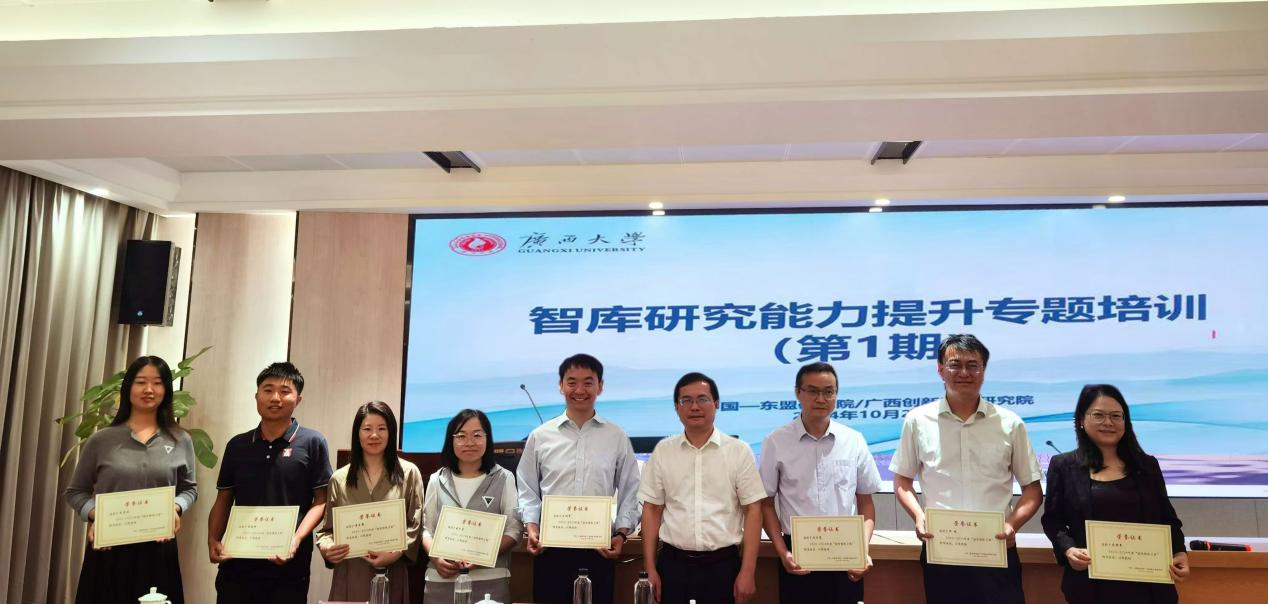 中国—东盟研究院/广西创新发展研究院特聘研究员黄家生从智库研究定位、如何开展智库研究、智库研究最高境界、如何写好资政报告、资政报告样本点评五方面做了《关于当前智库研究定位和如何写好资政》的报告。中国—东盟经济学院刘主光教授从咨政报告选题时效性、怎样与自身学术研究结合等方面做了《关于撰写资政报告的几点思考》的经验分享报告。中国—东盟研究院/广西创新发展研究院龙桂杰副教授从选题策略与技巧、调研方法与技巧、撰写方法与技巧提升、写作规范及注意事项、报送时机与对象选择五方面分享了咨政报告撰写经验体会。新闻与传播学院助理教授宋甲子就咨政报告写作的跨学科合作、大数据助力咨政研究等方面分享了咨政报告写作经验体会。中国—东盟研究院/广西创新发展研究院执行院长梁运文就举办培训班的初衷,创发院服务学校智库研究情况、《创新发展研究》编审流程编排格式、如何开展开源资政研究等做了详细介绍。